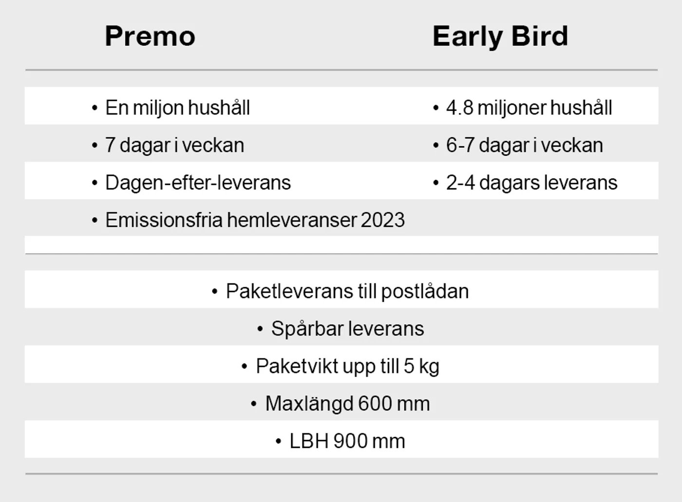 Det unika samarbetet mellan Premo och Early Bird gör att vi kan dela ut dina e-handelspaket i hela Sverige.