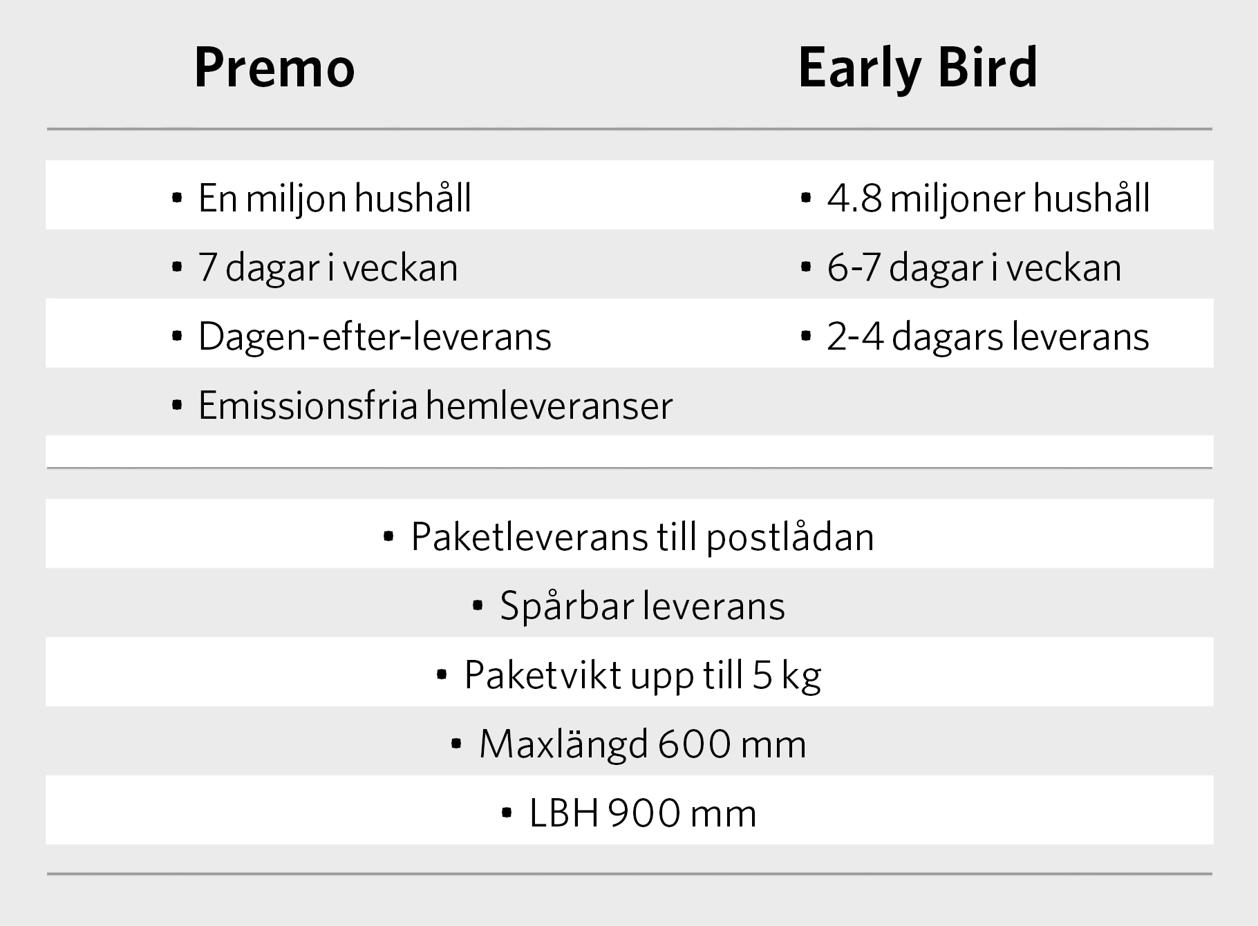 Premo ingÄr Àven i Early Bird-familjen och kan ta dialogen vidare för att fÄ ut paketen i övriga Sverige.
