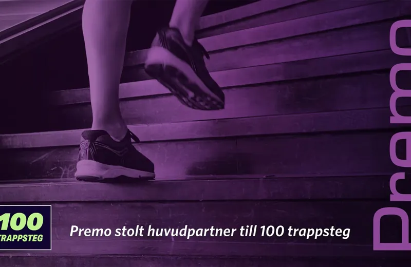 âVi Ă€r vĂ€ldigt glada över att Premo blir vĂ„r första huvudpartner. De Ă€r verkligen fina trappstegsambassadörer och deras bud Ă€r lite av nattens hjĂ€ltar, sĂ€ger Jenny Ă kervall, grundare av 100 trappsteg tillsammans med Mattias Sunneborn, VM-tvĂ„a i lĂ€ngdhopp pĂ„ 90-talet.