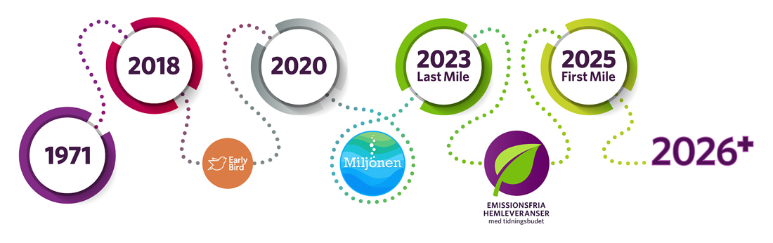 Nästa steg är first- och mid-mile, transporterna från tryckeriet och e-handelsförtetagens distributionscentraler till våra 27 filialer. Målet är att även dessa transporter ska vara helt emissionsfria under 2026.